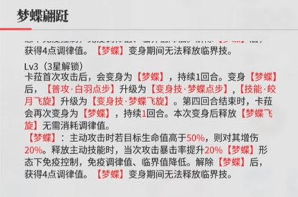 满星后,自身获得核心【摄录】状态,快速铺设【曝光】层数,获得完全体【记述】状态50% 攻击力和 20% 暴击率,和普通攻击的40%暴击率提升,进一步提升对敌方前排的压制力。