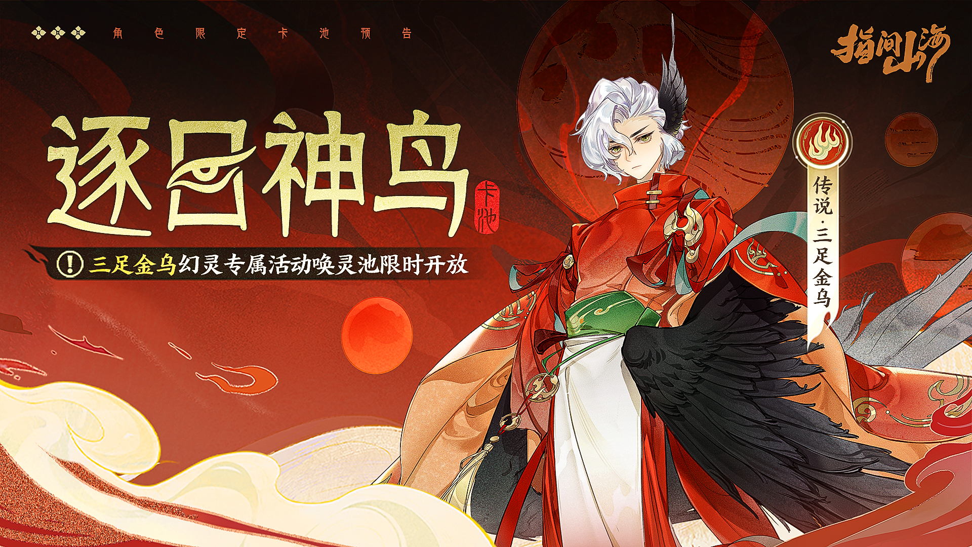 活动说明:活动期间内,传说幻灵「三足金乌」专属卡池「逐日神鸟」开放,50次招募必得传说幻灵!首次获得传说幻灵不是「三足金乌」时,第二次获得传说幻灵100%为「三足金乌」。具体可查看游戏概率公示界面。