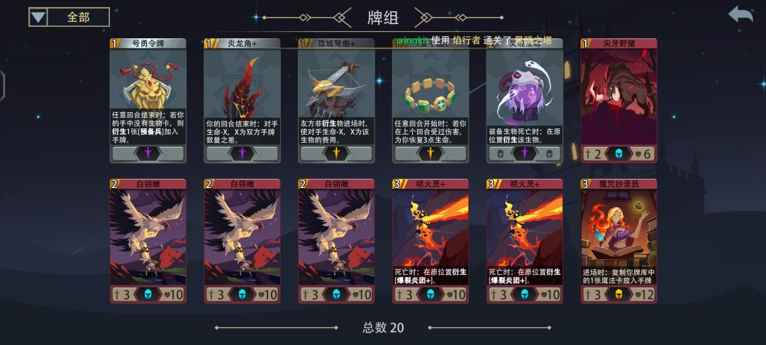 理想卡组:过牌(1~2张)清场卡(3张)直伤卡(2~3张)英雄装备(4~5张)卡组厚度(19~22张)
