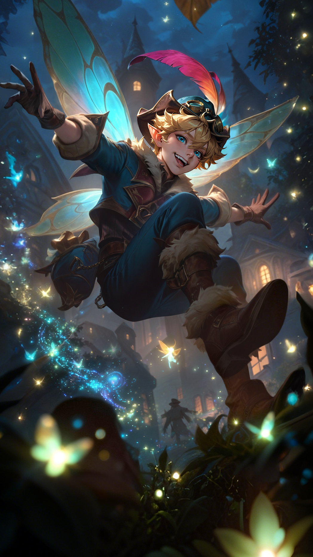 那少年半透明的翅膀在夜色中轻轻颤动,脸上挂着毫无畏惧的笑容。