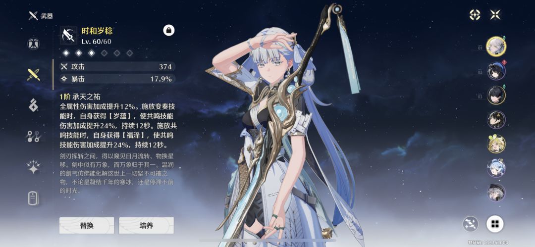 (不过是第一发十连就出了,所以也没有太纠结),然后觉得反正都出了,就又给她配了把专武,武器是第七十发出的。目前人物图鉴情况就是上面发的图的样子。过主线做做任务的话还是没问题的,练度方面等过完主线,先把大地锄一遍再说吧....