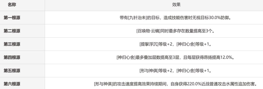 - 被动 1 “华英成秀”:基于自身在场的[召唤物·云螭]数量,自身技能威力提高。33.0%*[召唤物·云螭]数量;