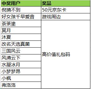 1、本次活动中奖名单将由中奖名单将由官方抽取并公布,实物中奖用户将通过名单公布加qq搜集信息后发放;
