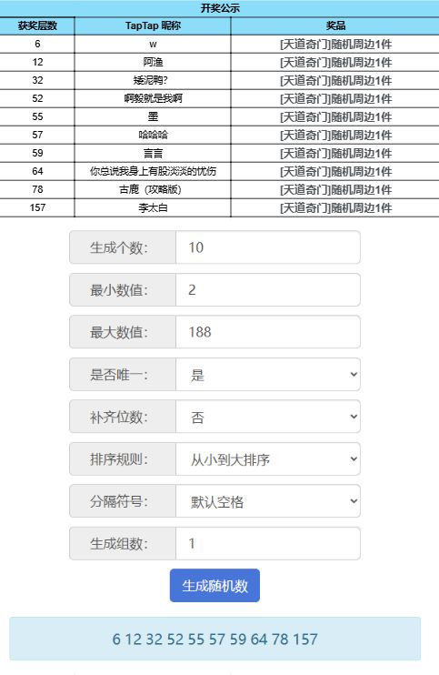 根据开奖结果显示,恭喜以下幸运的玩家们获得奖品: