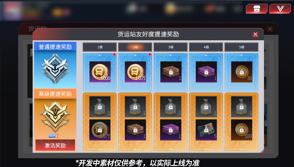 ②货运站友好度提速奖励(货运站福利):新增货运站友好度系统新增提速奖励,通过提升货运站星级,可免费领取普通通行证奖励,包括:金币、材料随机包、图纸随机包、货运里程币奖励。