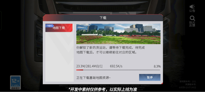 《卡车人生》于2025年12月25日上午8:00至9:00进行1.8.1「粤见潮涌」版本的停服更新,届时所有游戏服务器将无法登录,为确保各位司机朋友们的账号数据正常,请您合理安排游戏时间,并在维护前及时退出游戏。即刻跟随小卡提前掌握全新版本内容吧!