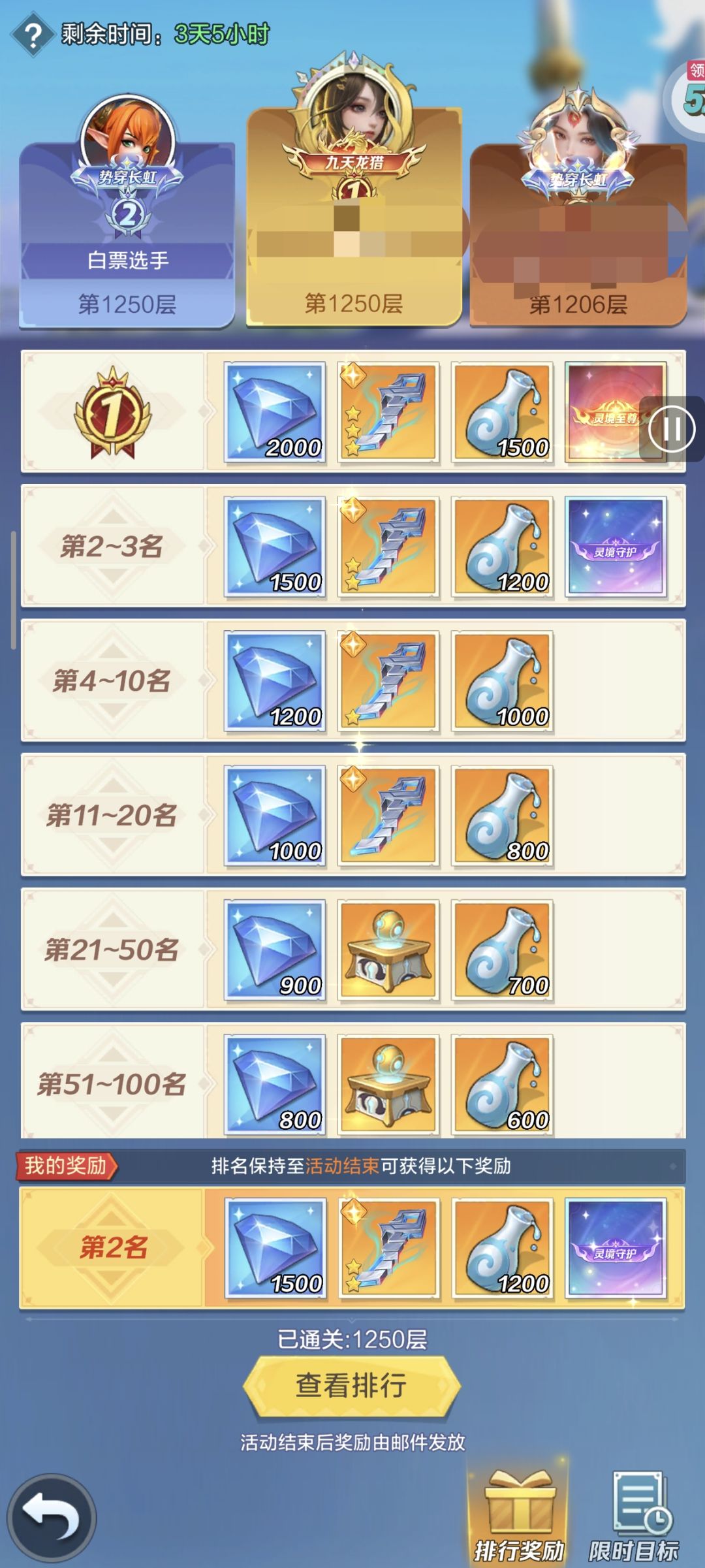 之前写了一篇零氪过198层拿到白票仙灵的攻略,这次写一篇小氪抢前三拿永久称号的攻略