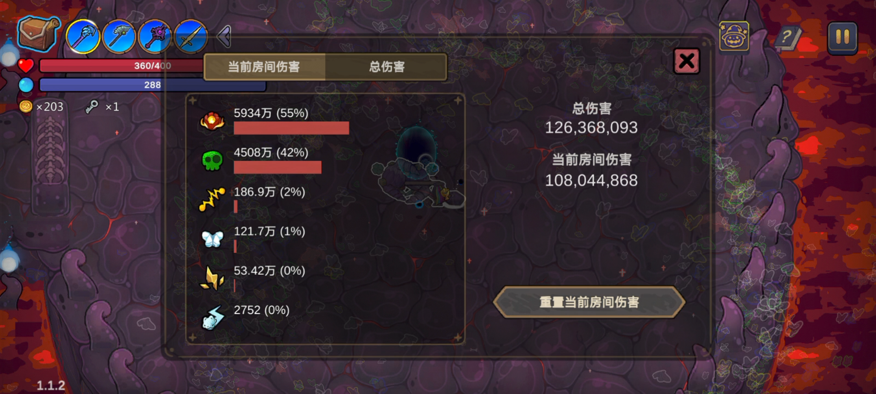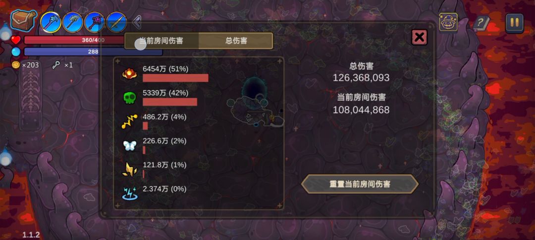总伤害1亿2千万6百多万,峰值秒伤百万。