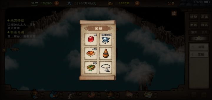 拿到宝藏内容:4血晶,30两银子,40洗髓,1熊魄丸,10小资质丹,1腰带