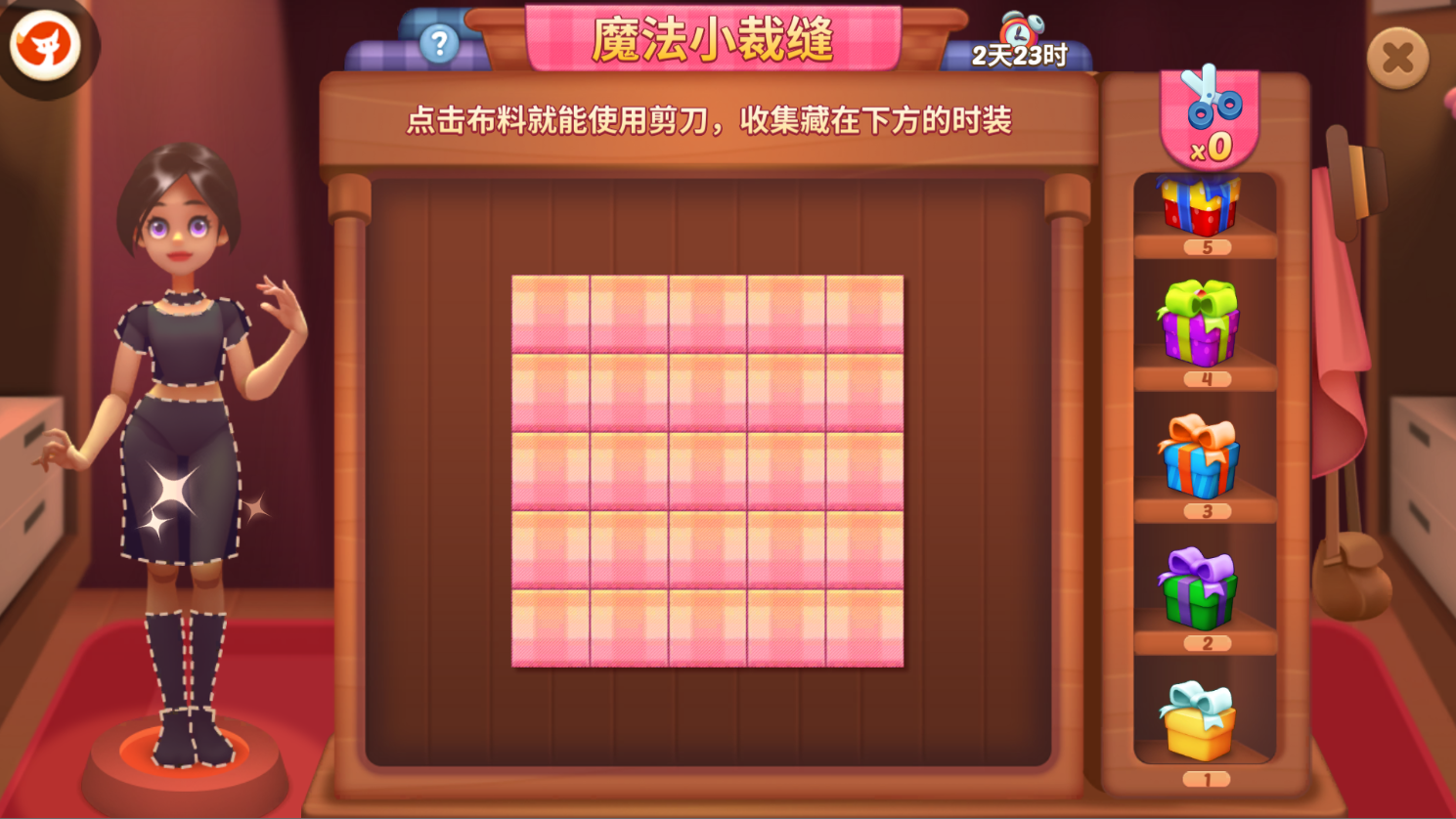 主题新活动——[魔法小裁缝]上线!消耗体力可以掉落剪刀,使用剪刀裁剪方格中的布料可获得精美时装单品,集齐全套服饰可解锁奖励哦!快来化身神奇裁缝,给小魔女换装吧~!
