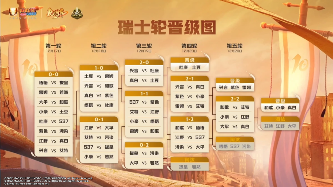 在2025《火影忍者》手游年度总决赛武斗赛瑞士轮中,选手们经过精彩对决,八强选手最终诞生,杜康、土豆、兴言、紫色、雷姆、和歌、小豪、真白成功晋级!