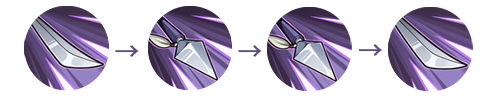 当以枪-剑-枪-剑的顺序释放技能时,荒谷持枪突刺,原地起跳扔出长剑,利用查克拉线操控其持续旋转攻击敌人,随后拉回长剑合并为枪,再将长枪扔出将敌人抓取在地,最后瞬身突进拔剑斩杀。