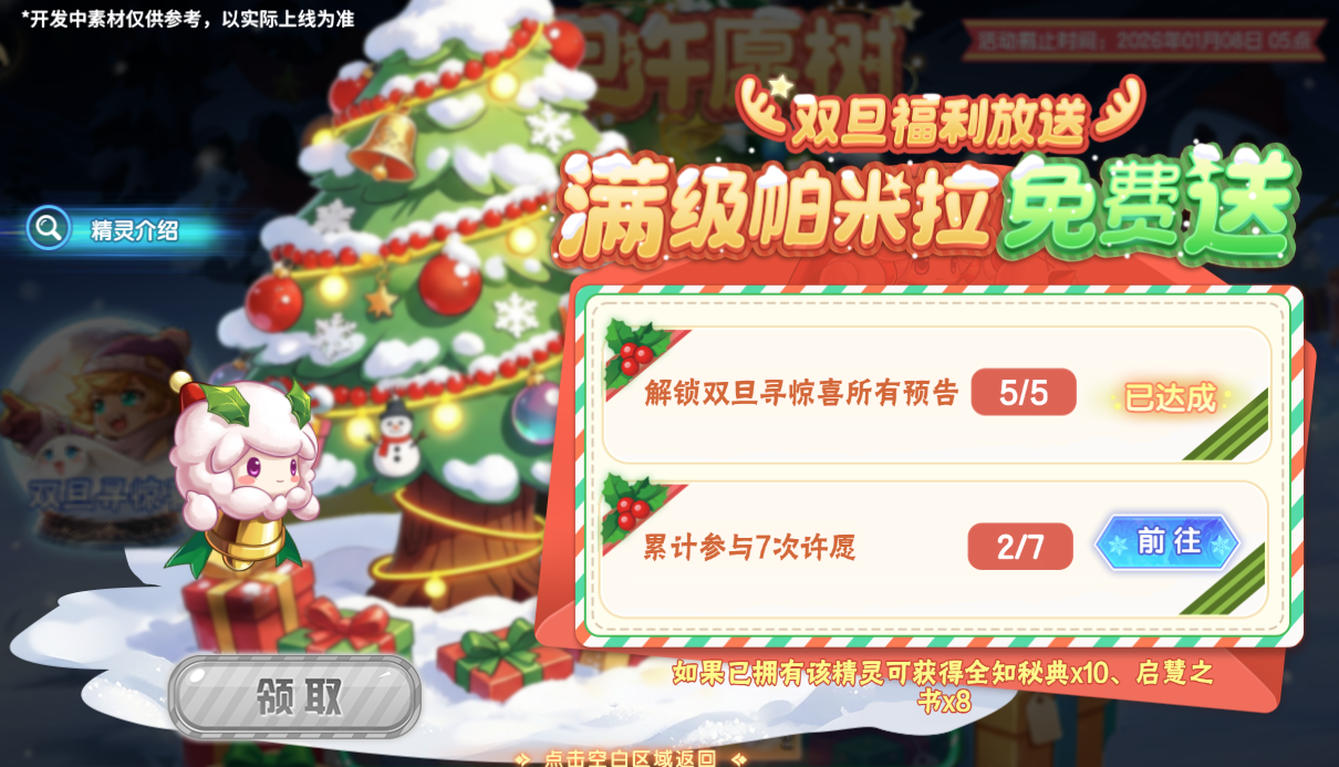 *双旦试炼——帕米拉与吉米拉合体活动将在12月30日开放,届时拥有精灵·吉米拉以及精灵·帕米拉的小西普们,可参与活动获取精灵·帕拉吉拉。