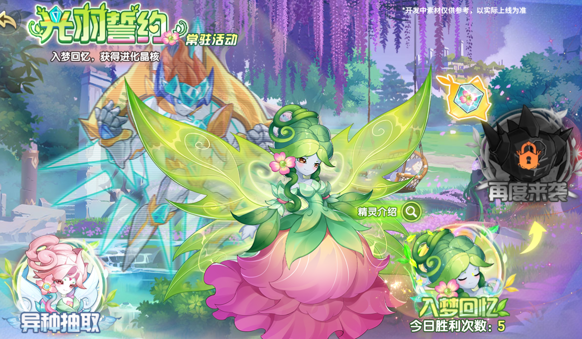 以光轮的视角,重温神国守护者与森林精灵的初遇悸动与理念碰撞,跟随羽伶的足迹,探寻遗迹的秘密。那些欲言又止的牵挂,那些牺牲背后的不舍,都将在回忆碎片中缓缓浮现。解锁回忆,让这份誓约永不落幕!完成入梦回忆后可解锁【再度来袭】,击退敌人可获取进化晶核。