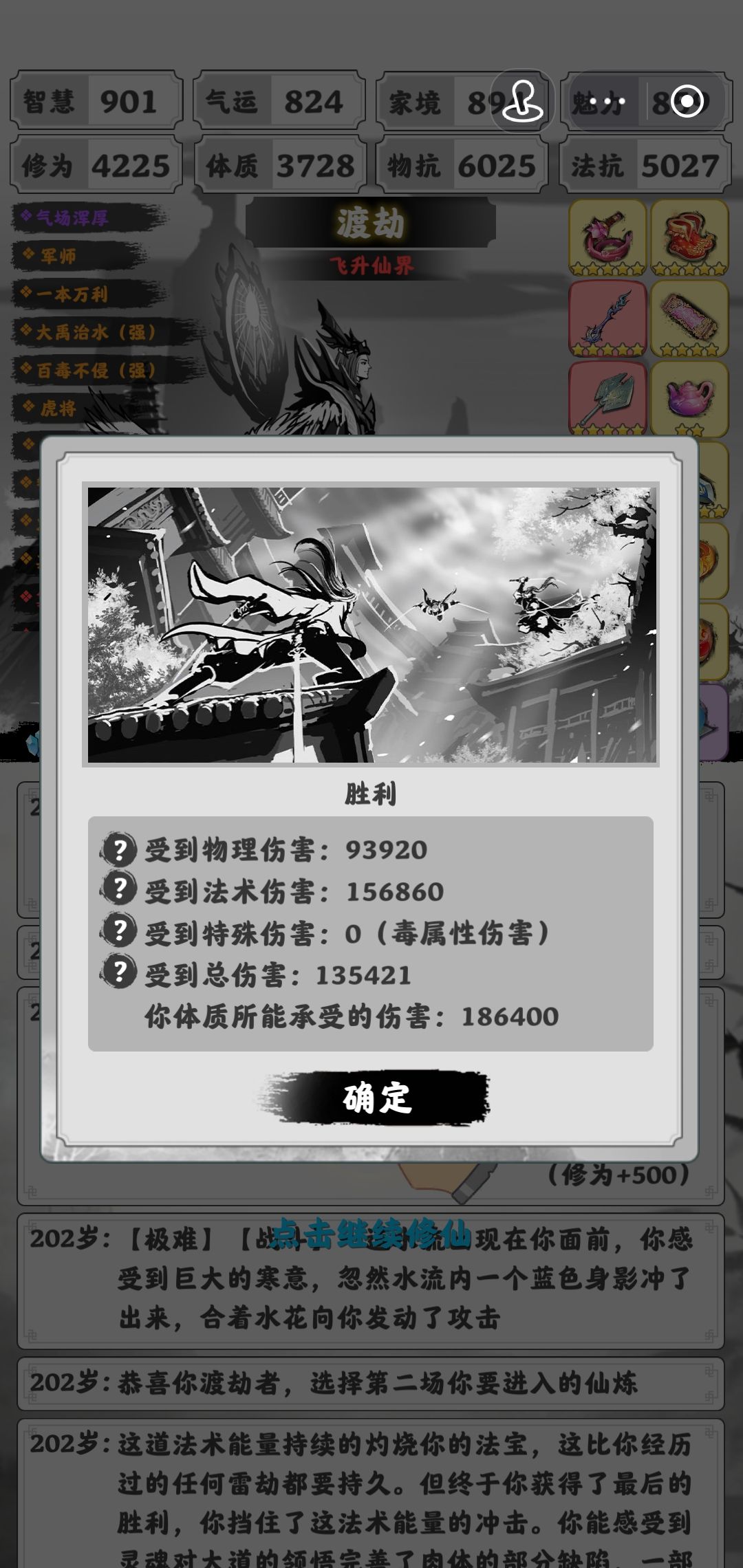 飞升的话只要第一关过了后面应该都没问题,如来神掌其实余量还不如飞升()玄溪还是缺装备,这把打到最后缺好多件装备,玄溪就是用上四维换丹药吃物抗,一颗物抗直接等效60,这把忘了极难法圣的家境了,多吃了一颗家境,总的来说容错还是相当有的。宠物雷毒,还是经典的最后雷戒换土钟,土钟换水珠(srds雷戒是给法圣预备的,可惜没用上)