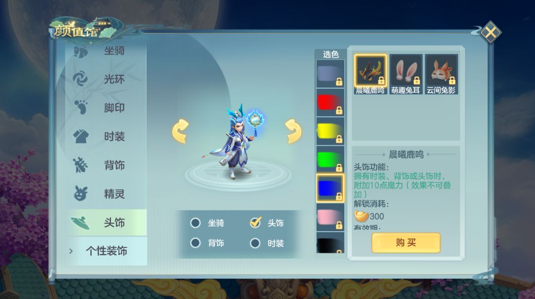 (2)新增头饰:晨曦鹿鸣、萌趣兔耳、云间兔影,新头饰将以直售形式上架颜值馆