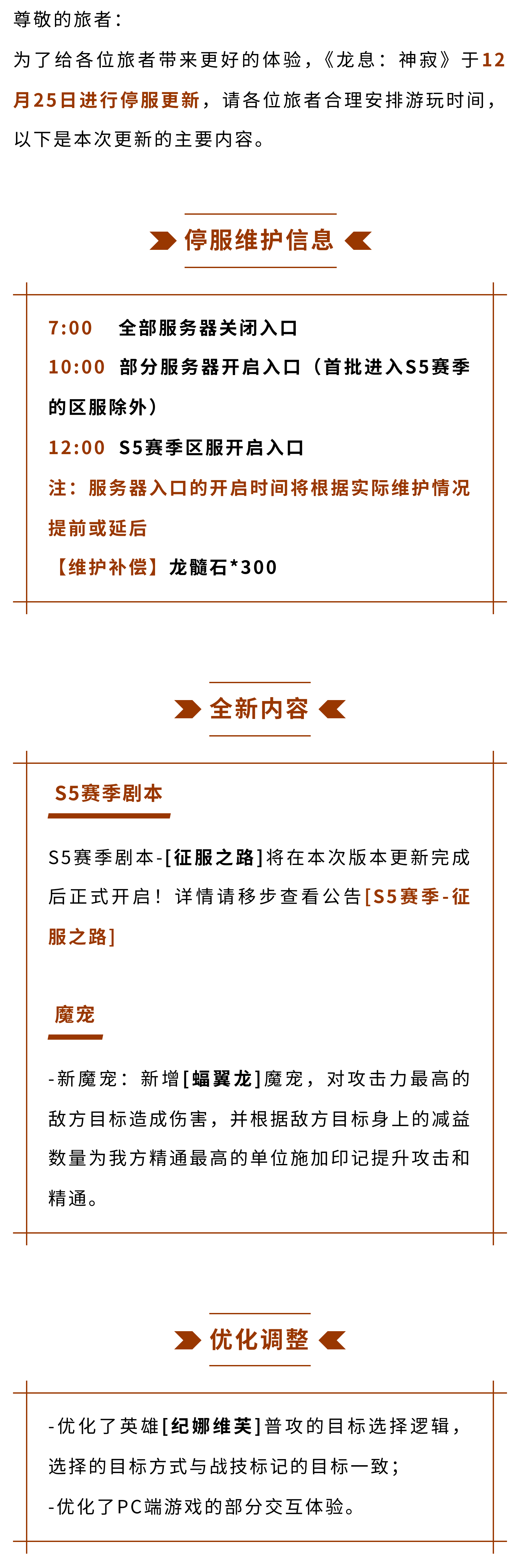 《龙息:神寂》12月25日停服更新公告
