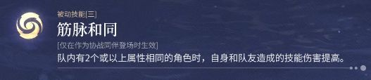 队里存在2个同属性队友时可以让自身和队友的技能伤害得到提升