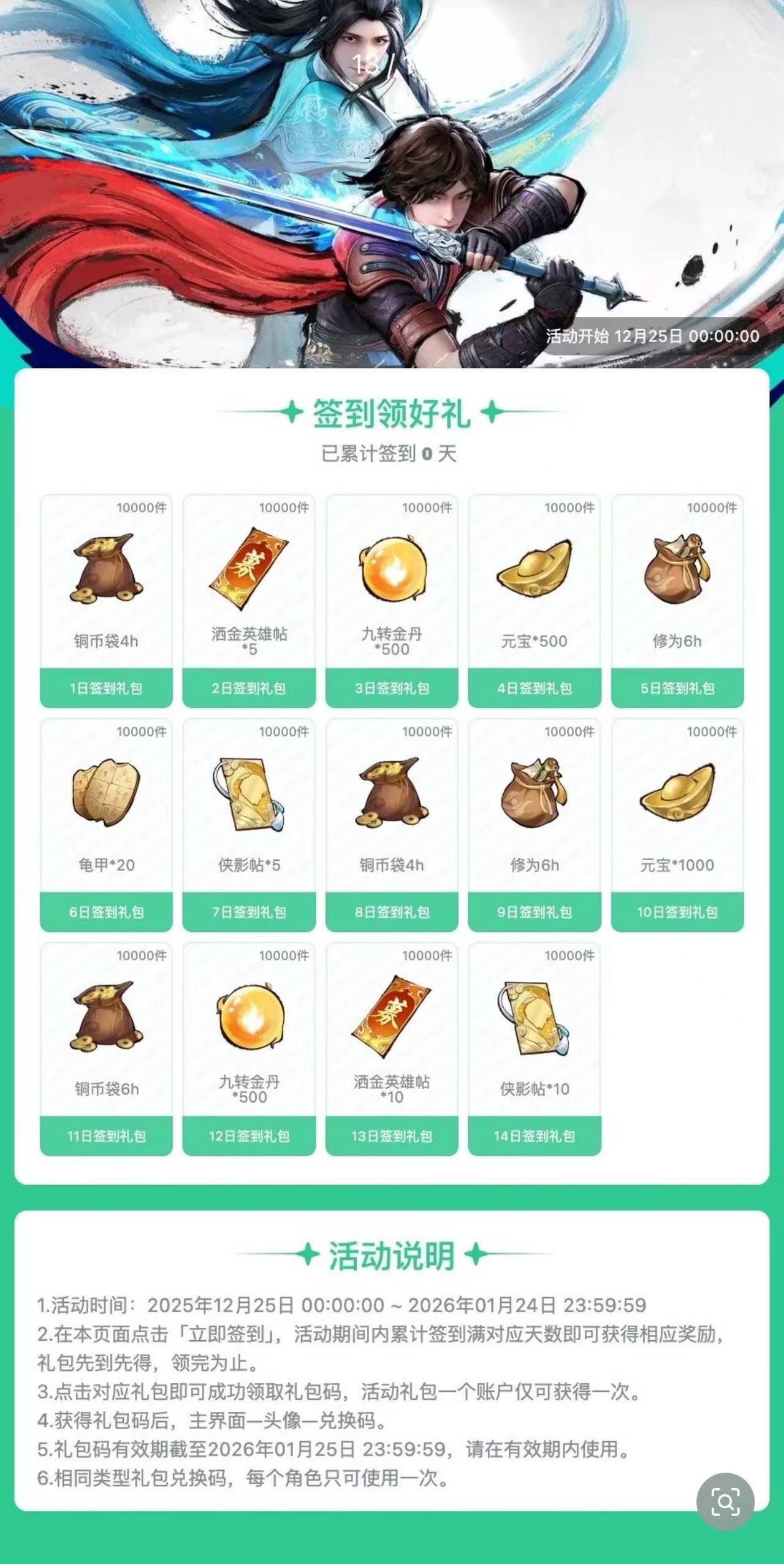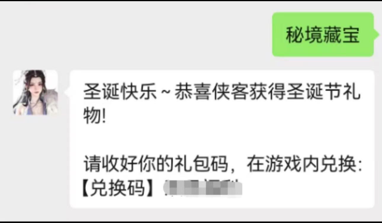圣诞老人悄悄潜入武林,为各位侠士备下了一份专属礼物!暗号【秘境藏宝】 已生效,只需前往公众号对话框发送此密令,即可轻松解锁圣诞礼包,奖励人人有份,即刻领取,愿这份惊喜伴你温暖过节!