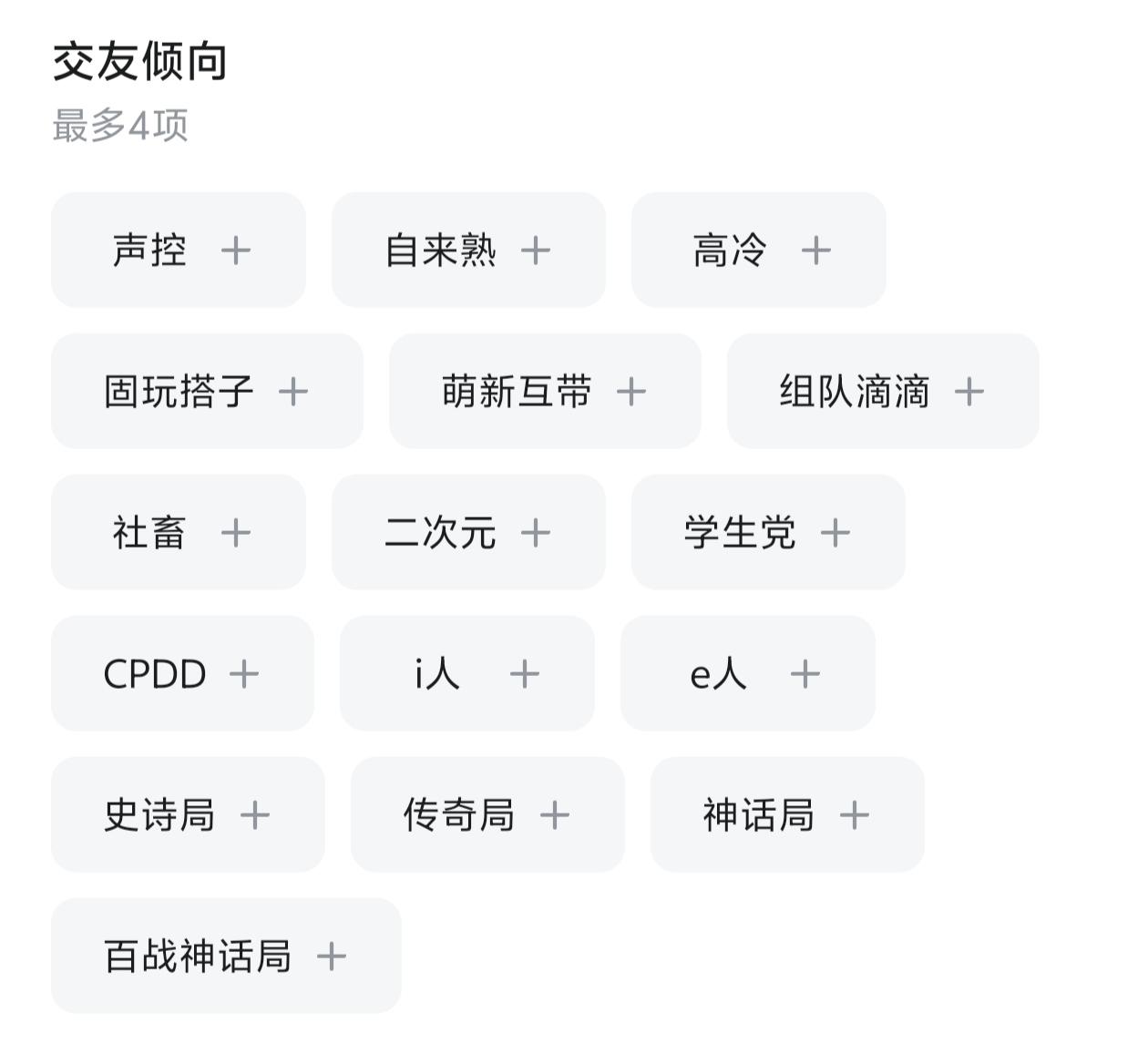 第三步:点击创建你的专属交友卡片,绑定数据查询后,可以选择你的交友倾向和组队偏好;娜宝还为大家准备了超多的角色标签哦!看看你是属于哪一种类型吧~