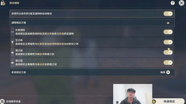 如果,前期不好匹配双暴,那么,攻击模版的主C,沙漏和头都可以带攻击,杯子带元素伤害的,能打伤害就行,生命、防御模版,如法炮制即可,一句话,反正能用就行。毕竟,前期大世界的伤害压力也不大。