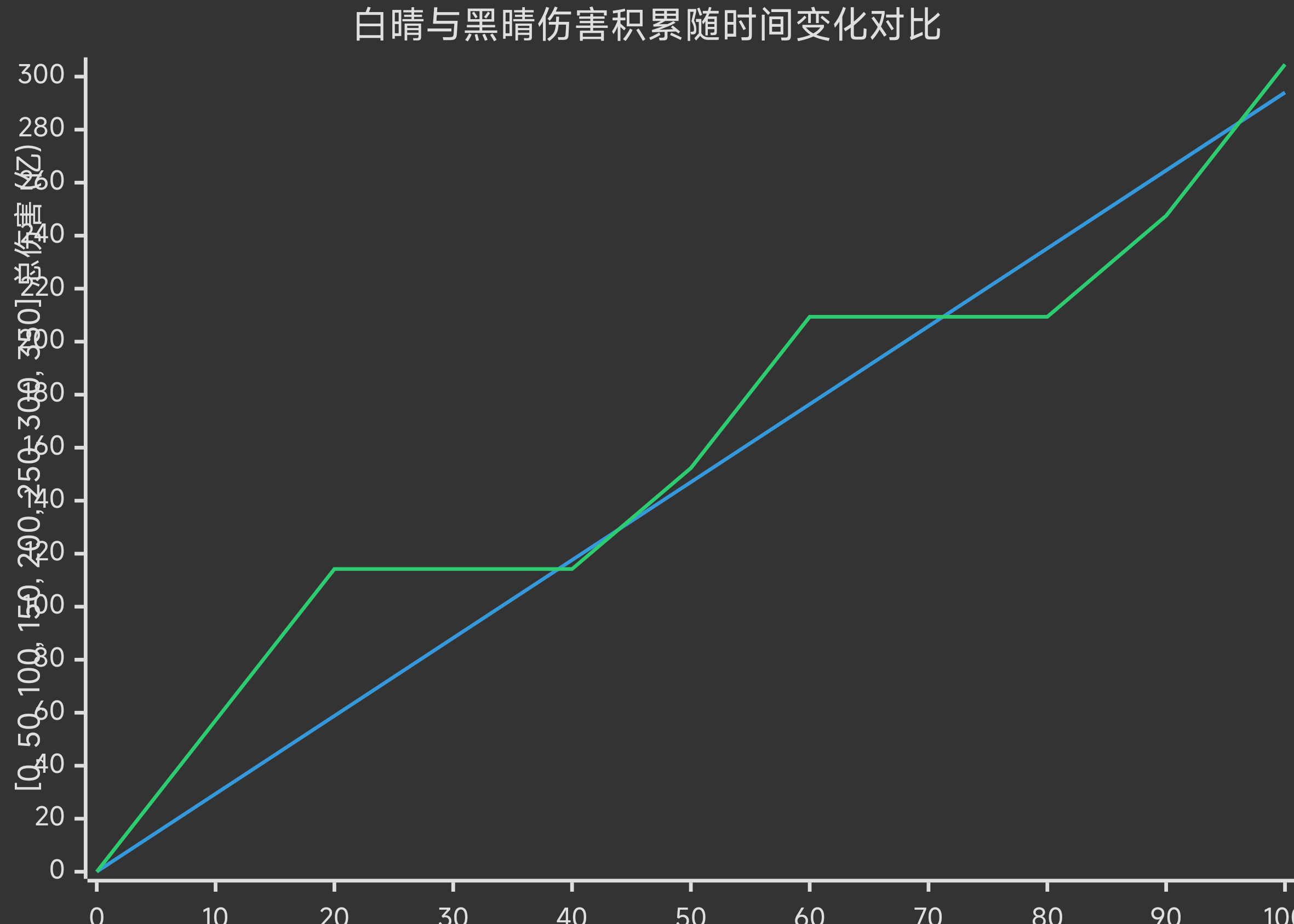 可以看到 在双方练度有差异的情况下 两者的平均输出能力基本一致 但黑晴的爆发更高,并且在长时间内不会比白