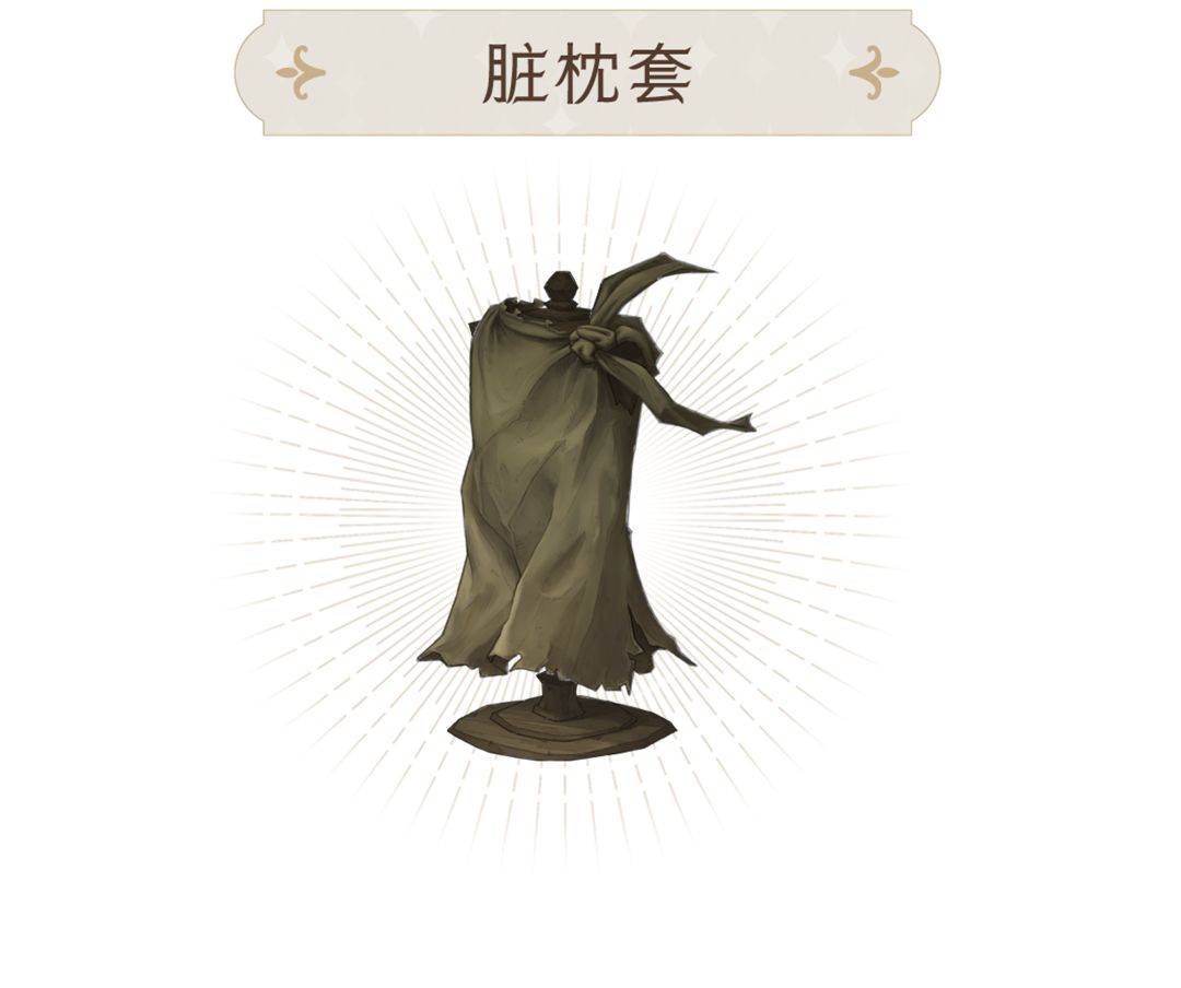 破旧的枕套曾是多比唯一的衣服,象征着它家养小精灵的身份。多比第一次见到哈利·波特的时候,身上就是这件脏兮兮的枕套。
