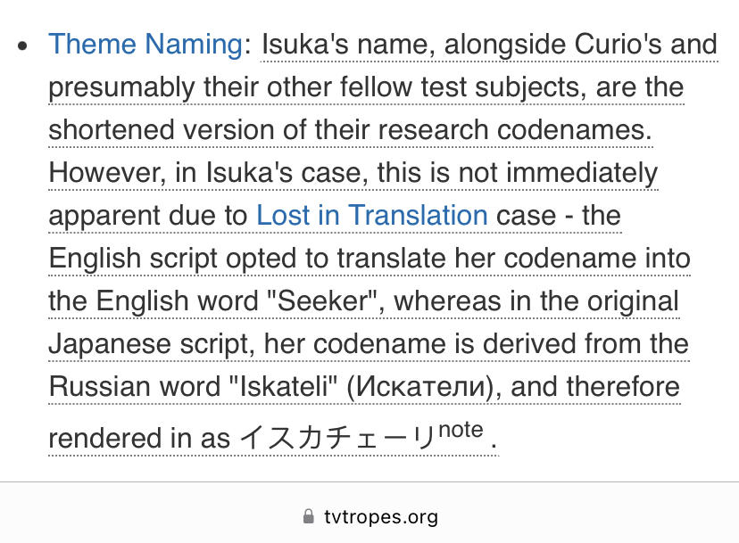 还有个名字叫“伊丝卡切利/雪莉(イスカチェーリ 、Iskateli)”(灵长外典第1话)。