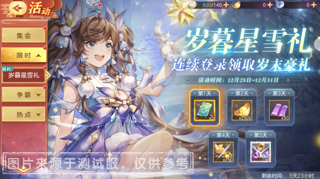活动期间,小将军可通过游戏活动界面-限时-【岁暮星雪礼】参与活动。