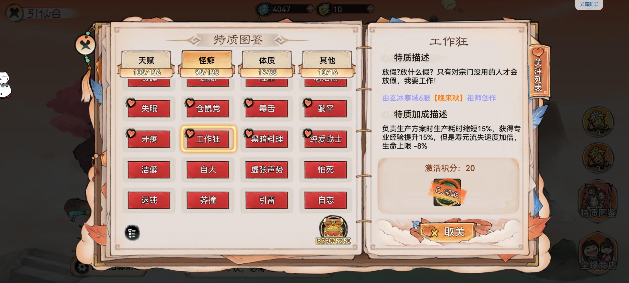 矿场:工作狂+聚灵奇才+懂王+完美主义+摸鱼