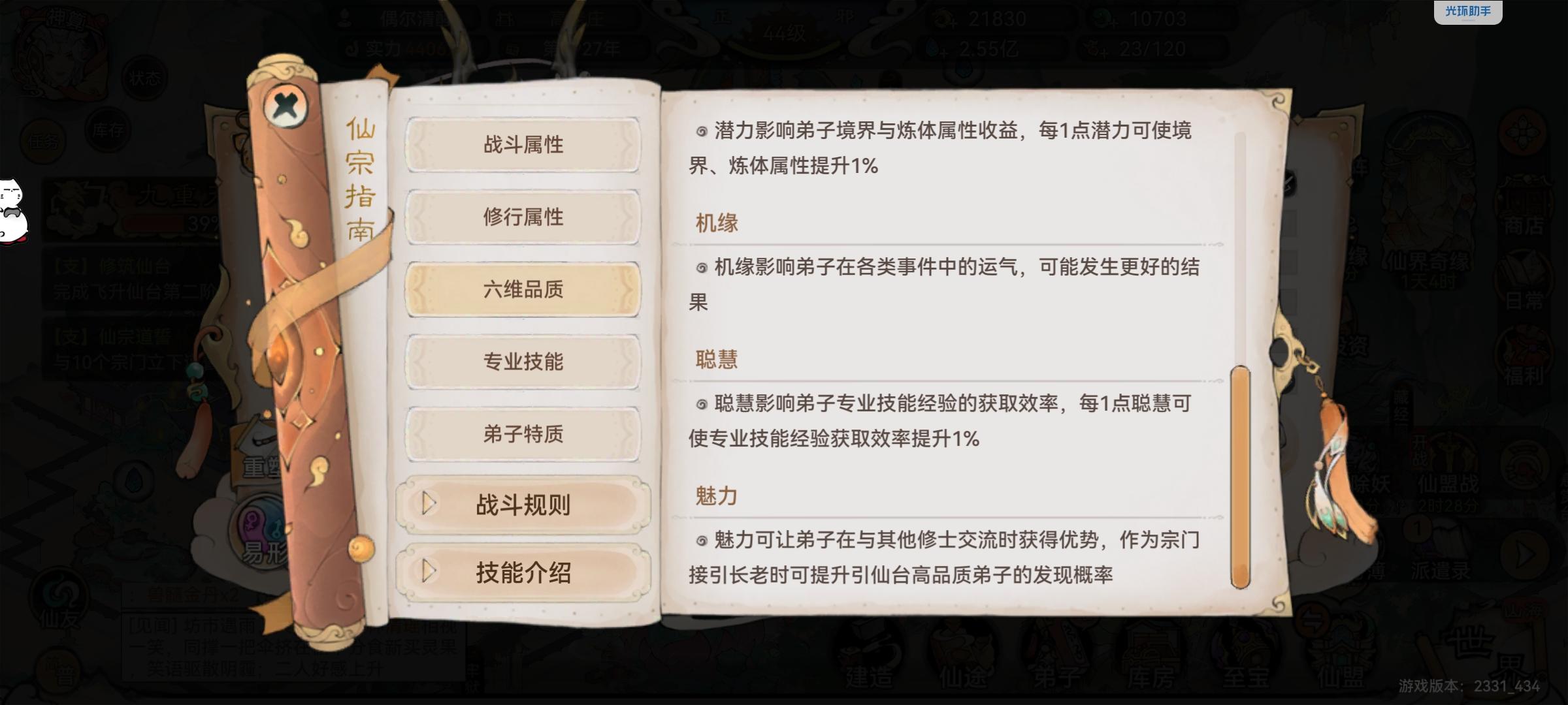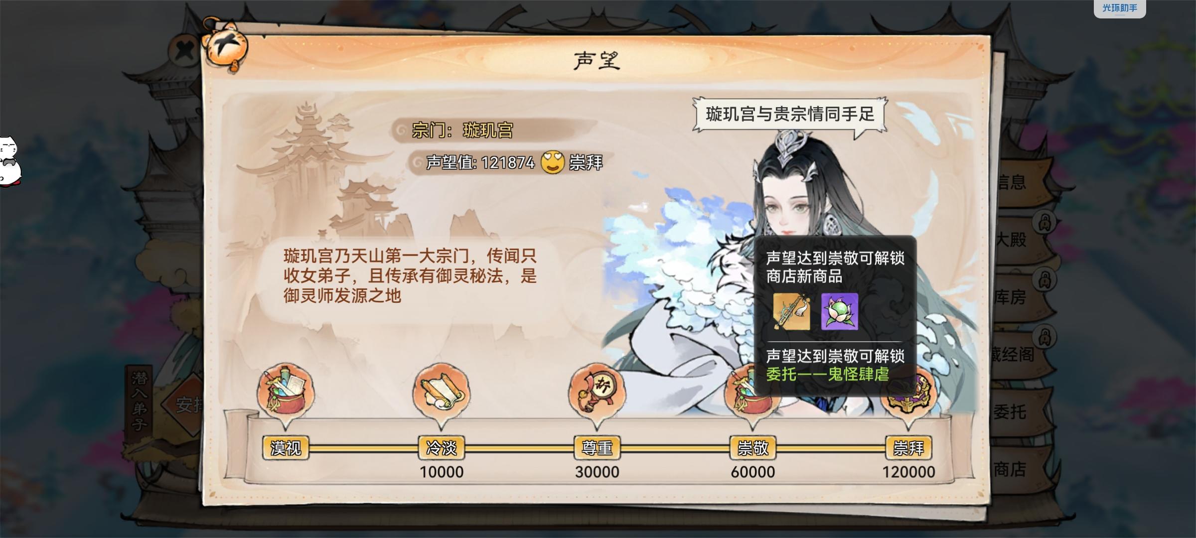 关于魅力:高魅力弟子可以提高宗门赠礼声望和招募弟子出橙红的概率,推荐招募到110以上弟子开始做,原理同上,也可以以紫霞为模板进行人造