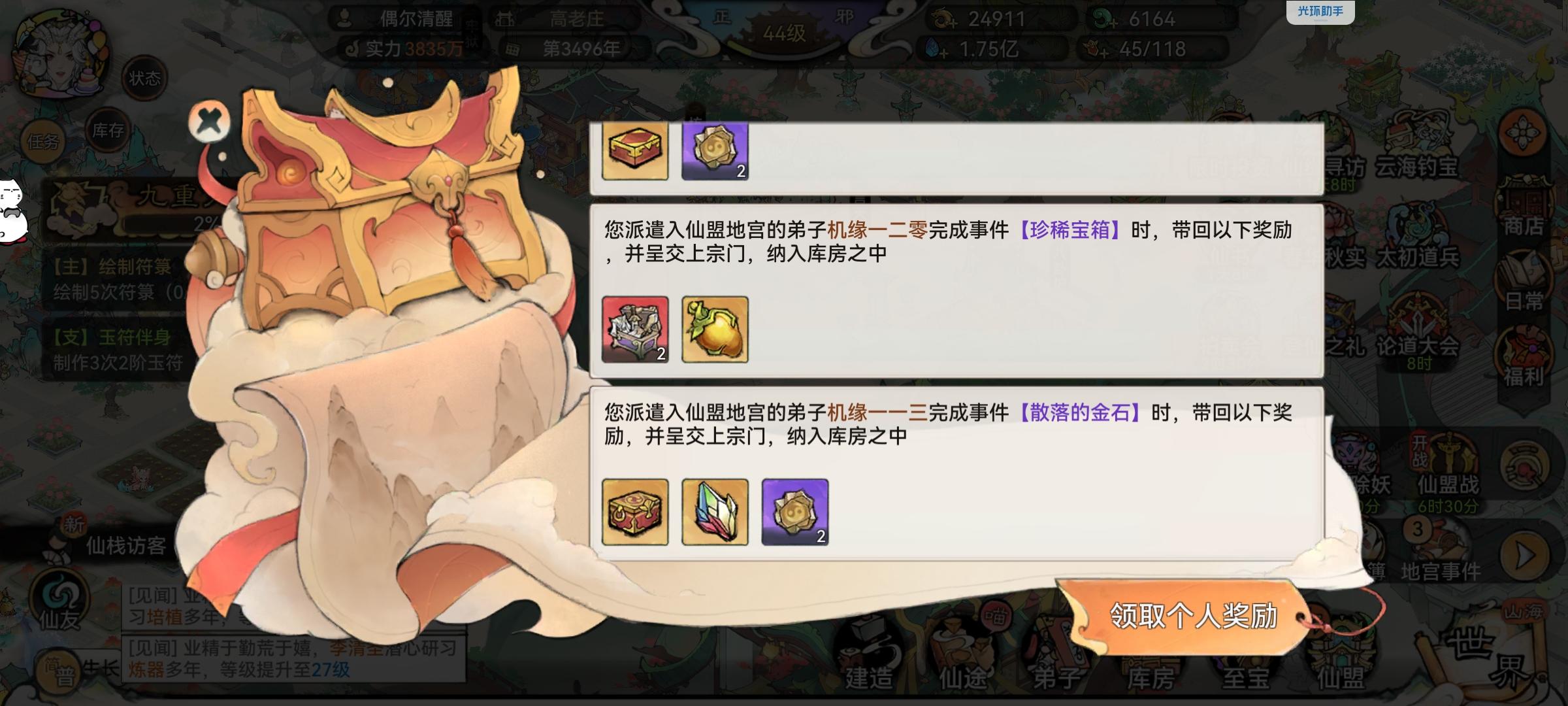 关于机缘:机缘属性目前我认为有三个作用,一是增加游历产量,二是增加钓鱼大鱼出现概率,三是增加地宫额外带出稀有物品的概率(最重要的意义)