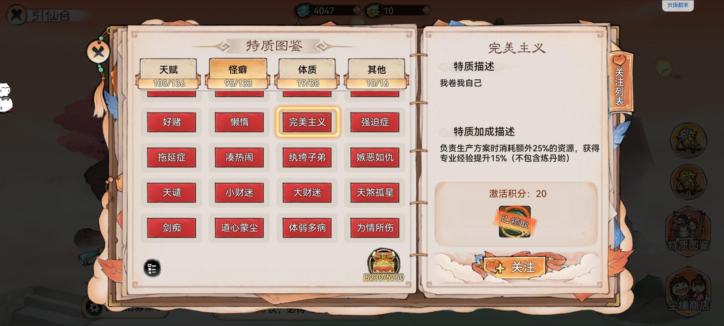 完美主义词条:加15%专业经验获取效率,但会额外增加25%资源消耗,因此,只推荐用于灵田林场和矿石这些消耗灵石资源的生产设施