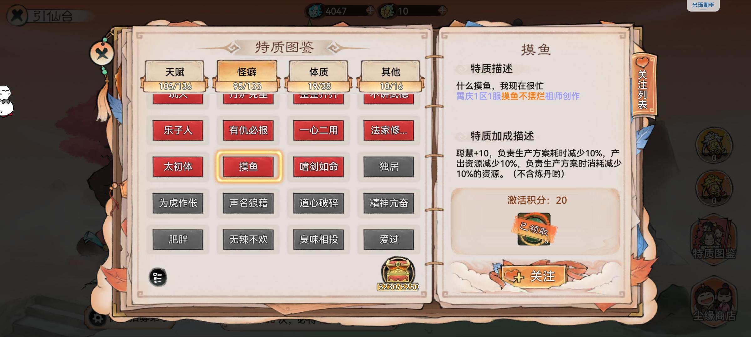 炼丹:工作狂+炼丹奇才+懂王+摸鱼(呦呦)