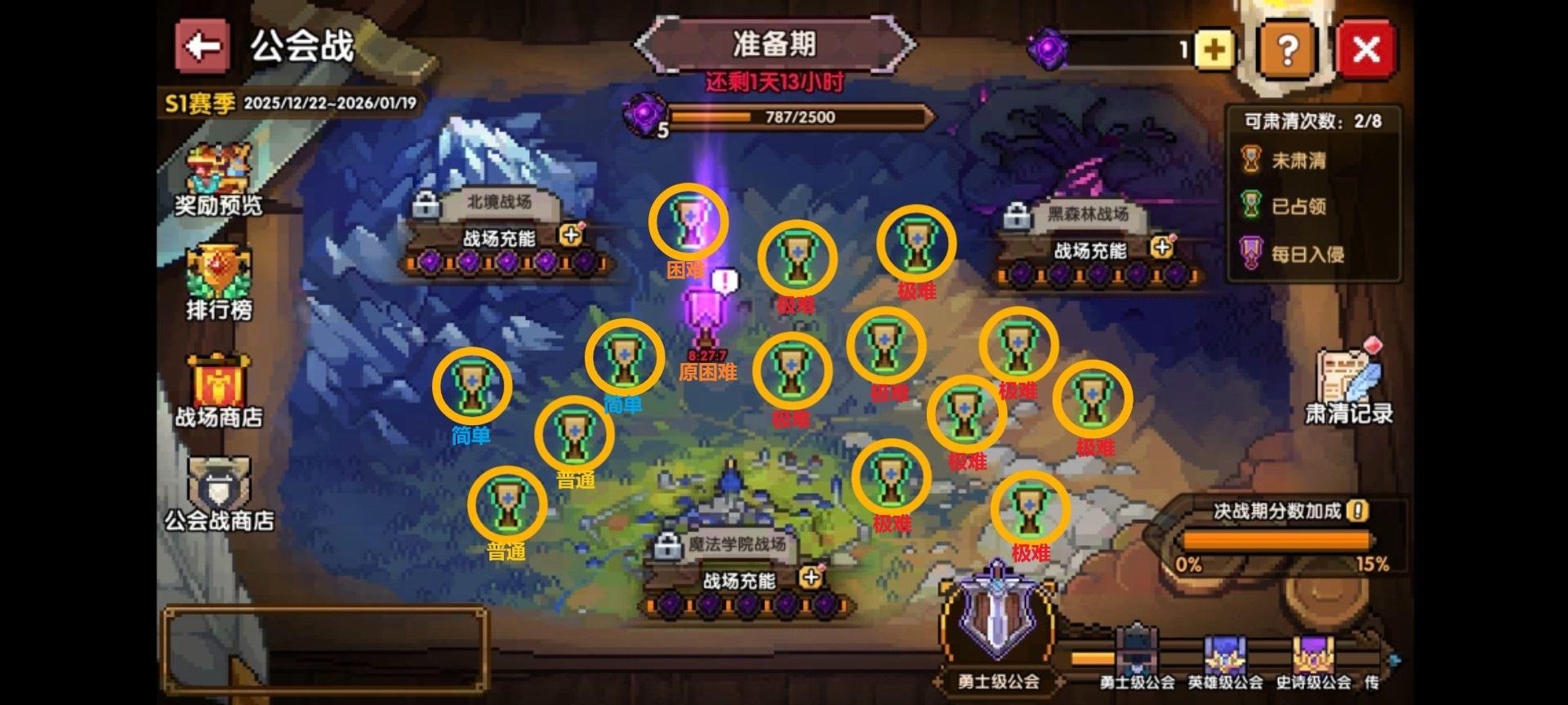 肃清:退出不扣次数,难度不影响能量获取,仅影响公会勋章