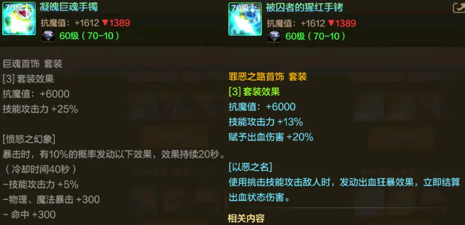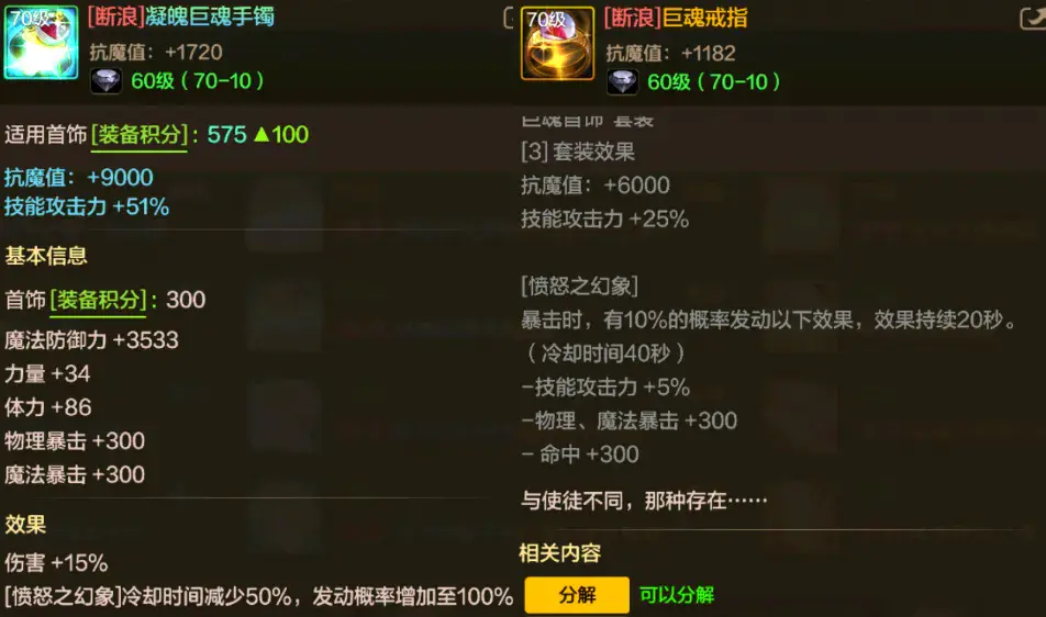 “巨魂套”自带600点暴击,在上个版本同样备受青睐,但随着耳环和魔法石的加入,装备本身越来越多暴击,巨魂套也就逐渐没落了。