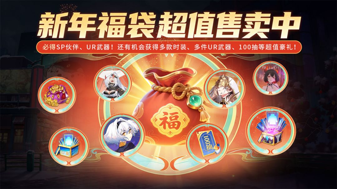 鸿运当头!开启福袋必得SP伙伴、UR专属武器!有机会获得100抽、多款皮肤、多件UR武器等超值豪礼!