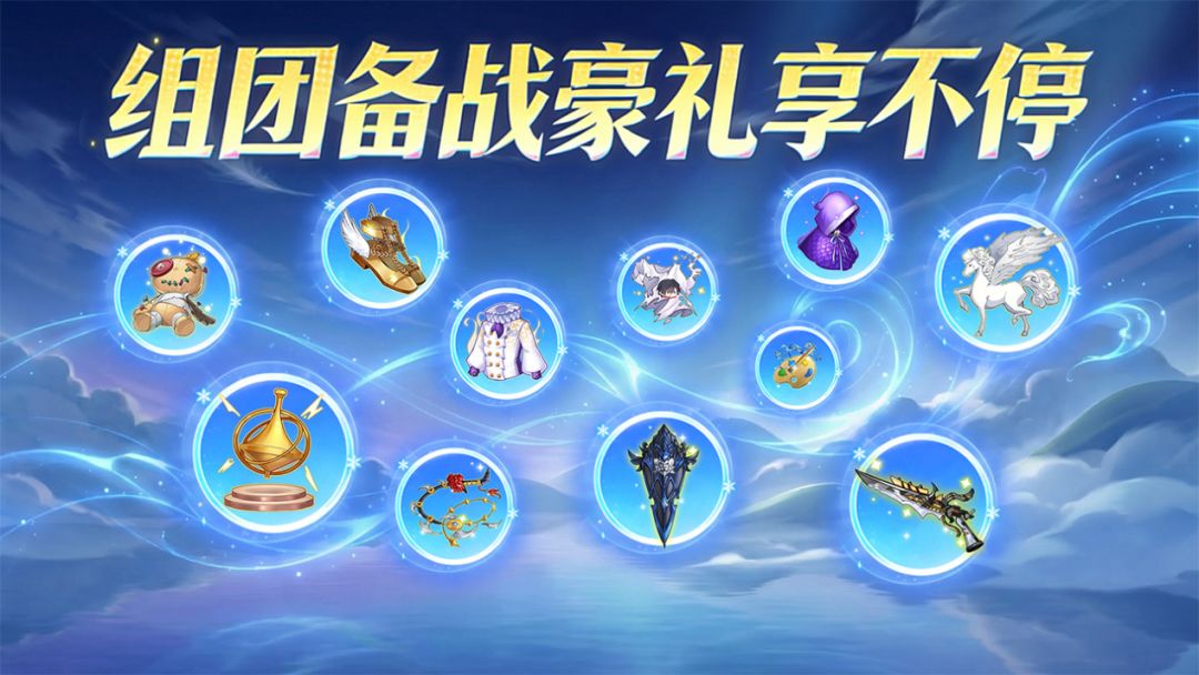 加入团队与团队成员共享豪礼,快加上三五好友一起组团吧!最高可获得SP伙伴、UR装备图纸、万能碎片等众多豪礼!