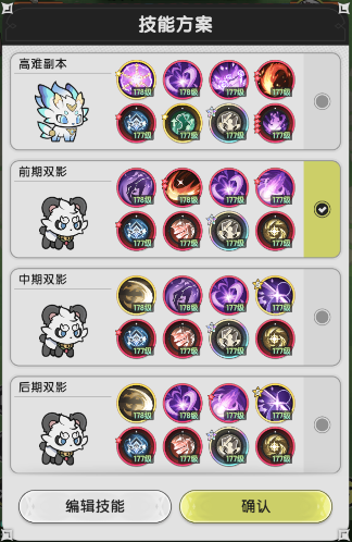 反正推图来来去去就是这几个技能,自由搭配试一下,推图确实很难做全的,我推图起码换了不下十几套方案,自己多切技能尝试,这里就不详细赘述了。推图主要是续航和抗伤能力,怎么去解决这个问题,扛得住基本上就能过,不像骑士扛得住可能过不了。