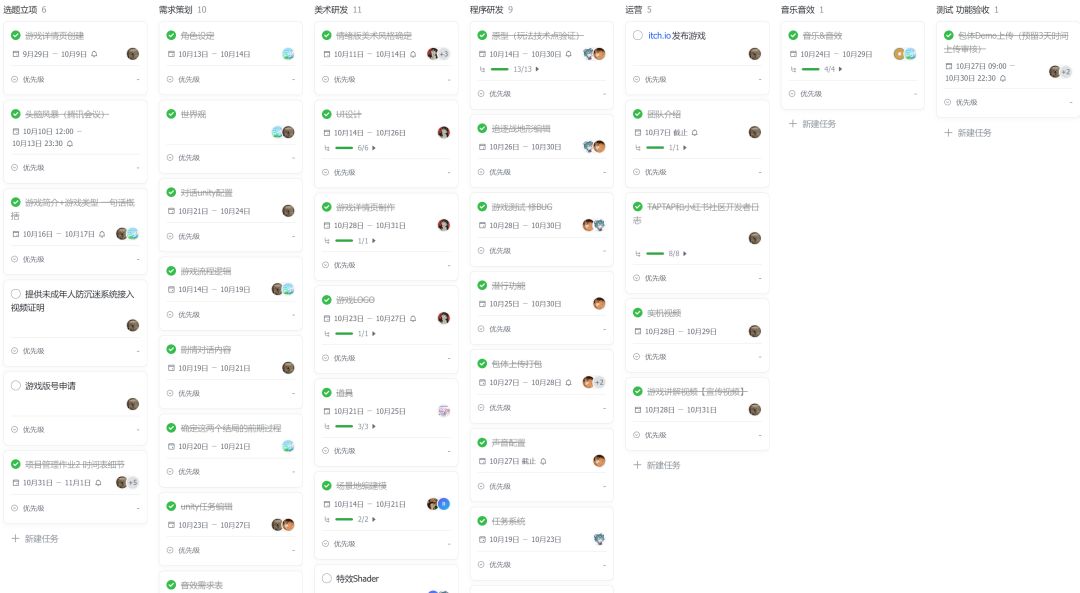 回顾的时候我发现,前期策划组在方案落地上的时间确实太长了。这也是我们没有生成策划案的原因,设计方案一直在变动,而最后大致确定的时候已经是开发的中后期了,于是我们就直接通过流程图的形式沟通内容和项目管理(虽然我是一个传统的文案派)。好在在策划设计上瓶颈的时候,其他开发工作仍然有所推进,毕竟已经确定了3C和风格,也有了大致的地图设计。美术在做场景建模和UI设计等,程序在开发基本功能。