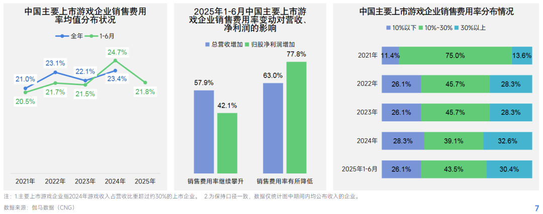 第二,上半年,国内主要上市游戏公司的销售费用率均值,迎来近5年来首次明显下降。游戏公司销售费用大头是广告费,可以简单认为,大公司广告投入大规模精简,粗暴铺量模式正被淘汰。