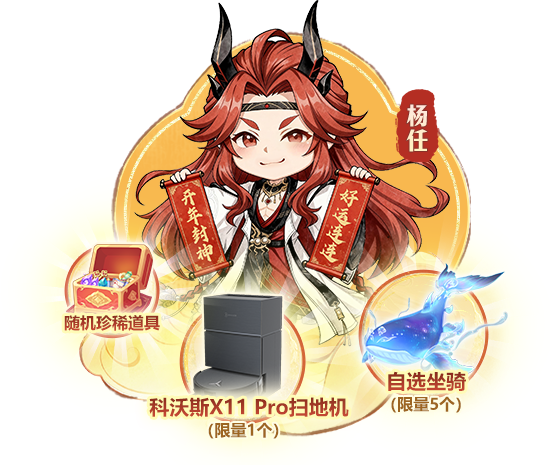 太岁神君杨任能洞察周天之事、佑趋吉避凶,给天命之人送上自选坐骑和科沃斯X11 Pro扫地机,祝大家新年解放双手,小事尽在掌握!