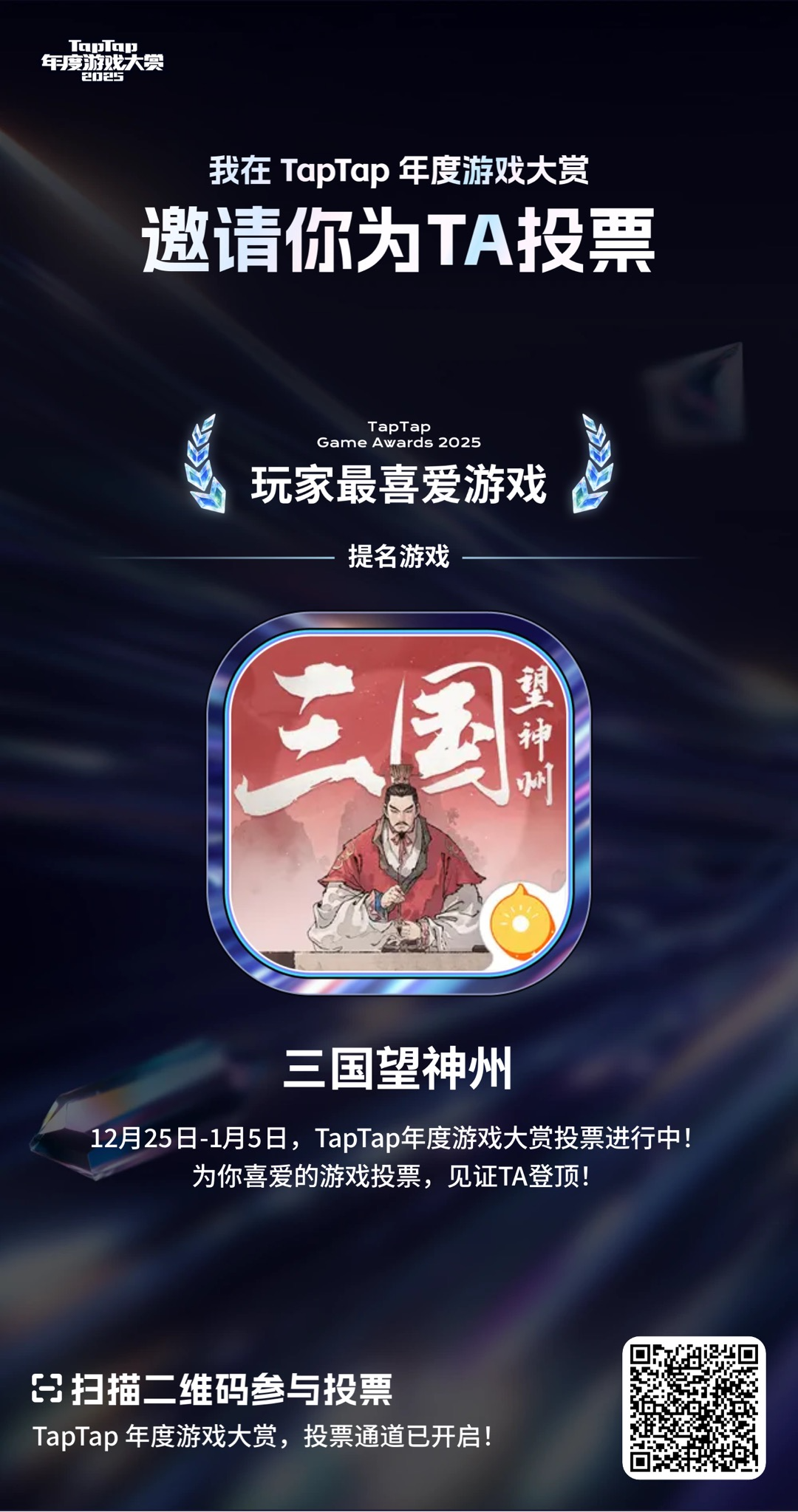 《三国望神州》入围2025TapTap年度游戏大赏专业奖项!