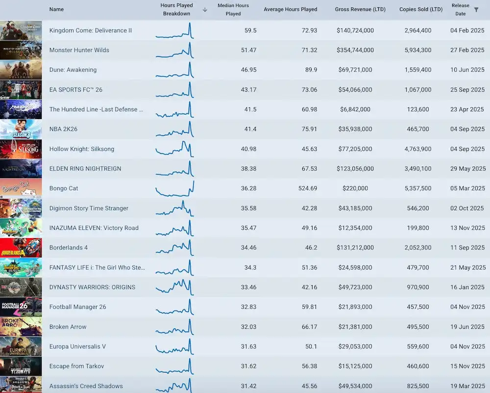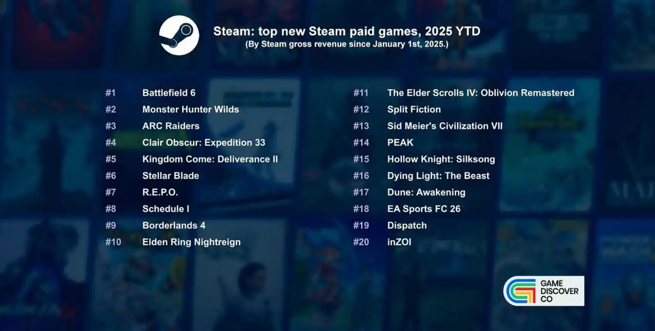 正如GameDiscoverCo在 2024 年和 2023 年所做的那样,GameDiscoverCo也对2025年度最畅销新视频游戏的估算来结束这一年,以下是它们的排名!