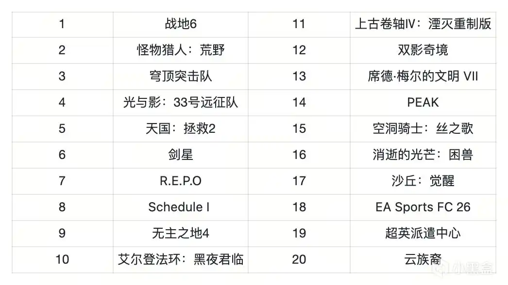 首先从 2025 年 Steam 上按销量计算的新游戏排行榜开始,今年与往年不同,有很多平价游戏登上榜单: