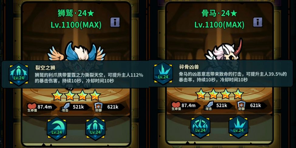 如果没有狐狸就建议骨马或狮鹫,增加暴击率或者爆伤
