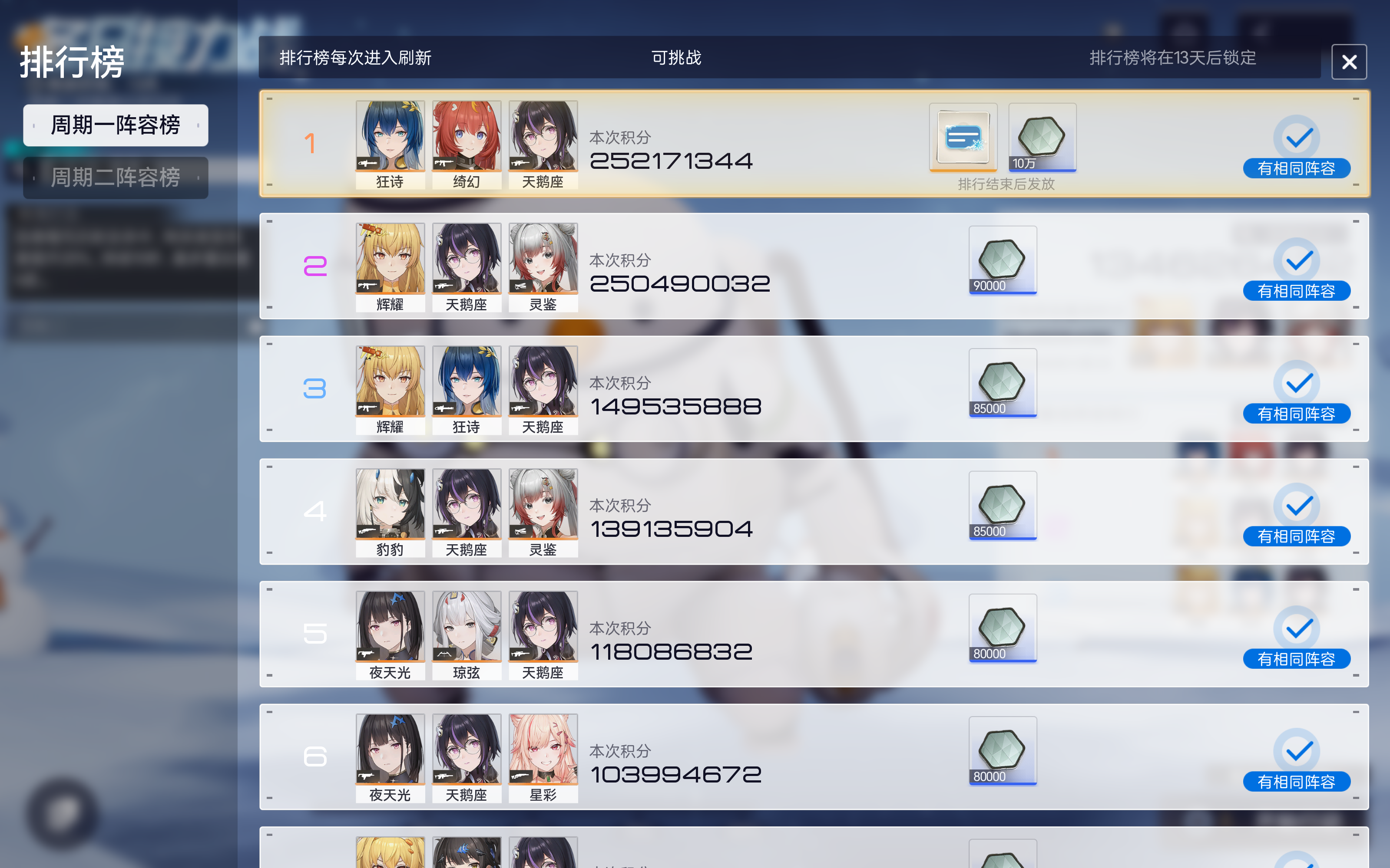 如下图,我目前是全部阵容都有,但是今天打了一次,算阵容第二名。那我能拿的到底是哪个档次的奖励?