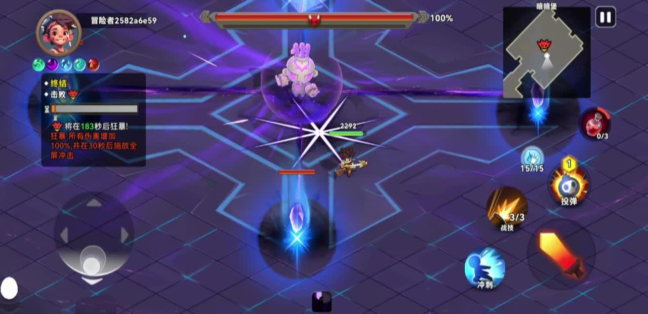 (3) boss释放暗影轮盘的时候可以直接走位躲避,暗影裂隙用冲刺躲避。在它释放暗影碎片的时候还会再释放一次暗影轮盘,破坏碎片的时候注意一下走位,碎片打掉之后他会陷入昏迷,这个时候站它背刺身位输出