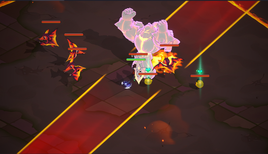 (3) 几次普攻过后会释放熔岩之跃,boss脚下会出现箭头,冲刺躲掉之后继续输出,尽量保持输出不要断。BOSS放火焰冲击的时候也是同理,冲刺到安全位置之后继续输出