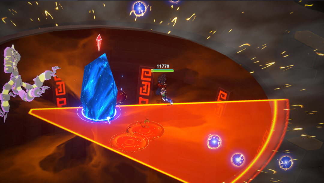 (3) 需要注意的是BOSS的技能雷霆领域,会在我们脚下位置连续爆炸5次,需要时刻注意走位,并且每5次爆炸会生成一柱水晶